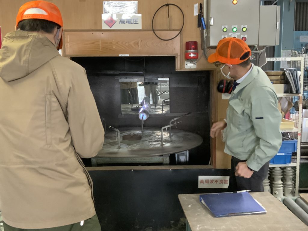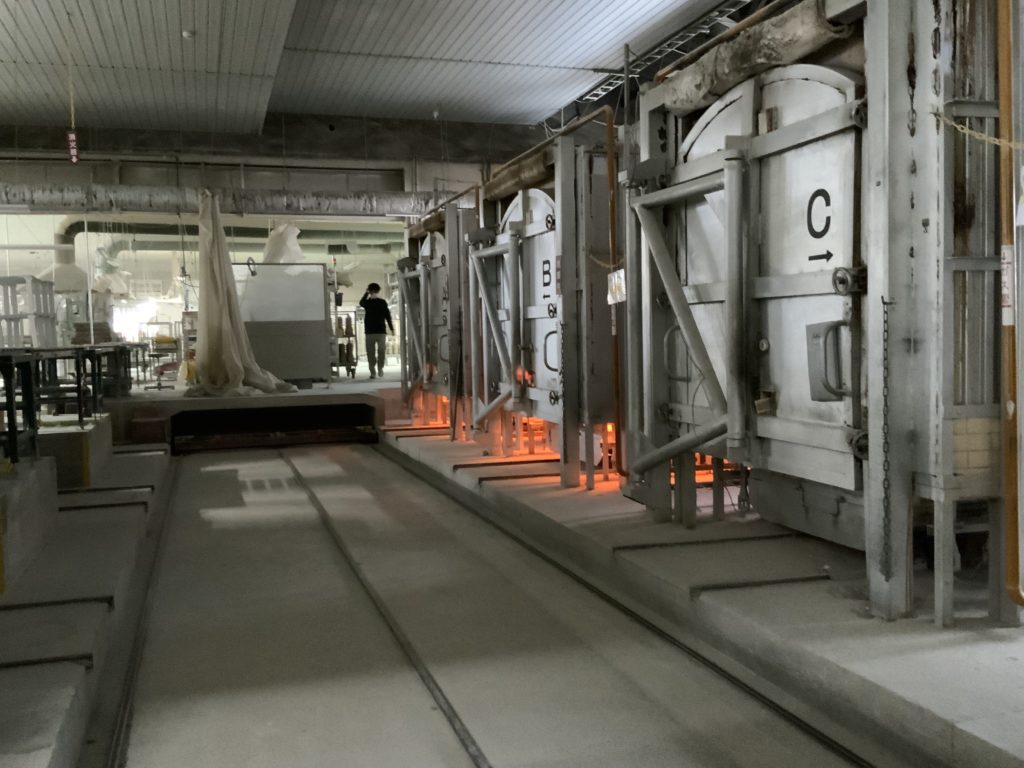 製造量も計画的に行なっているため、バッチ炉という、いれたり出したりできる炉を使って焼き上げていきます。