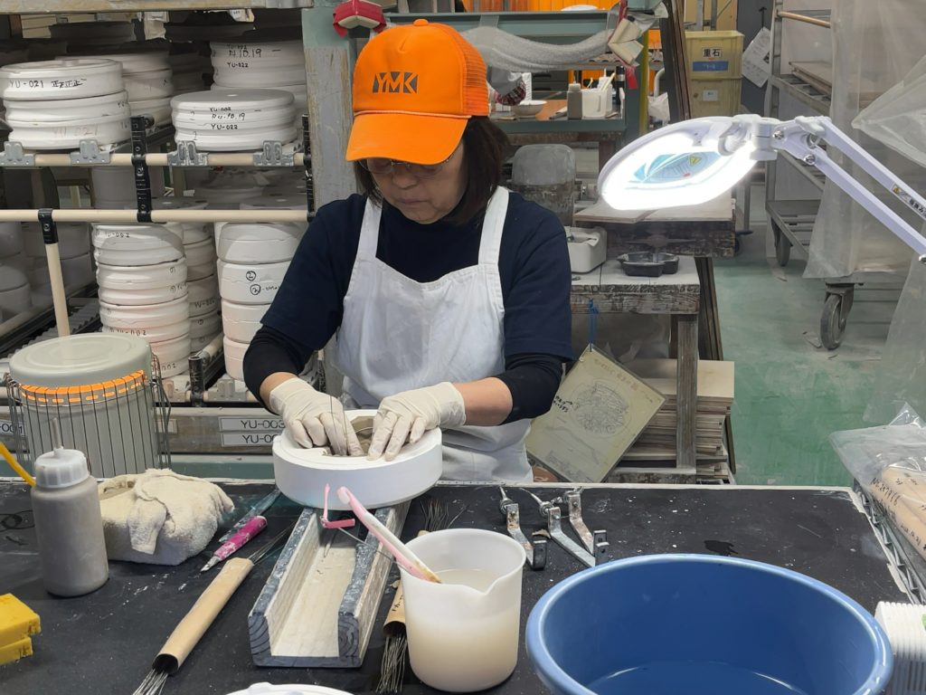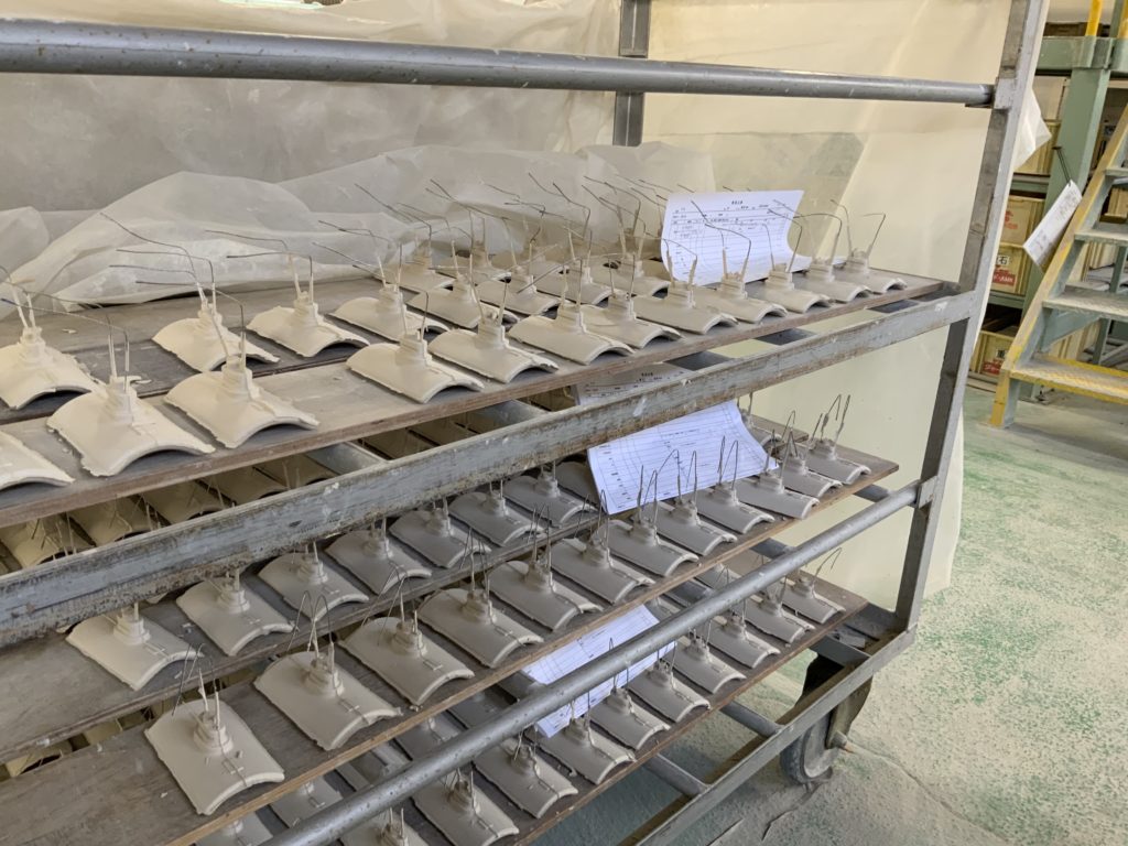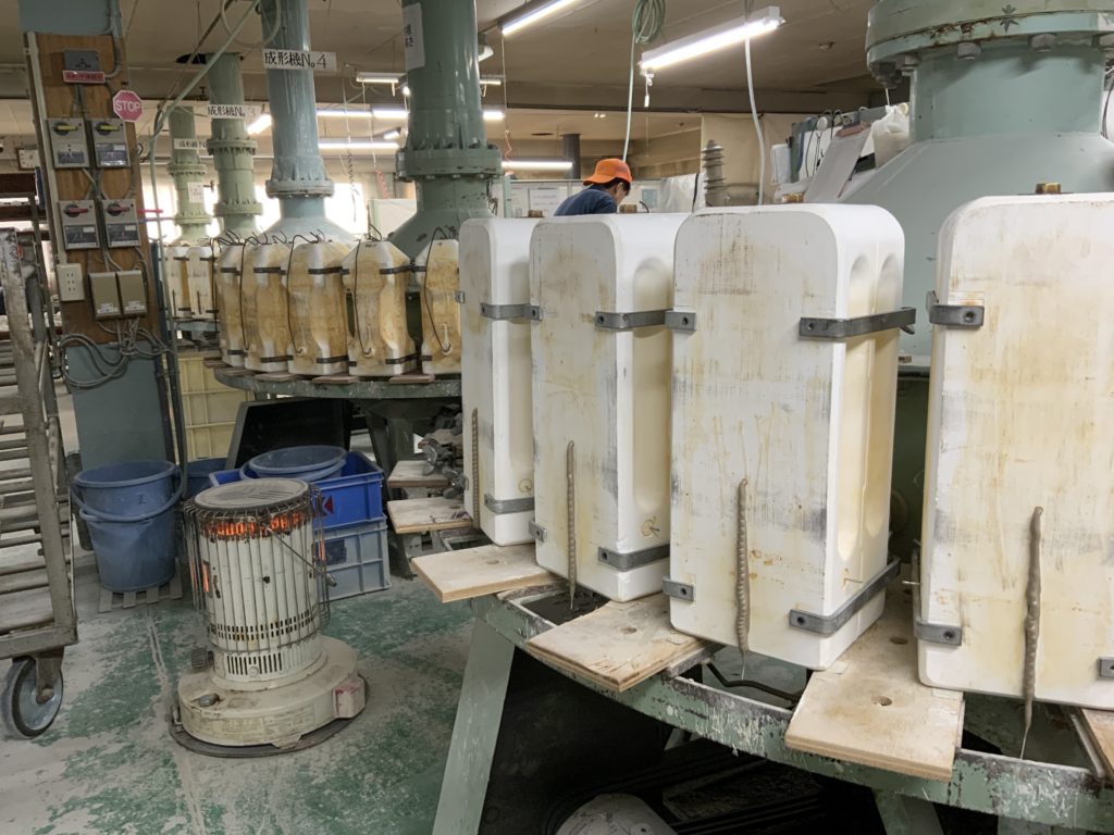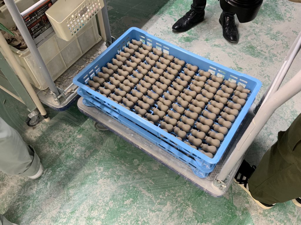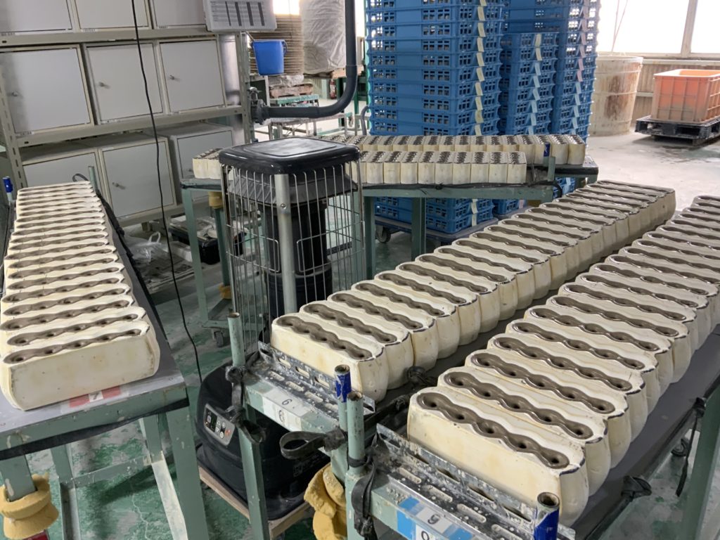 これが鋳込みによる成形法で、エアーなどの人工的な圧力では隅々までうまく粘土が行き渡らず、このような手法に行き着いたそうで、この方法だと複雑な形状も形成可能なのです。