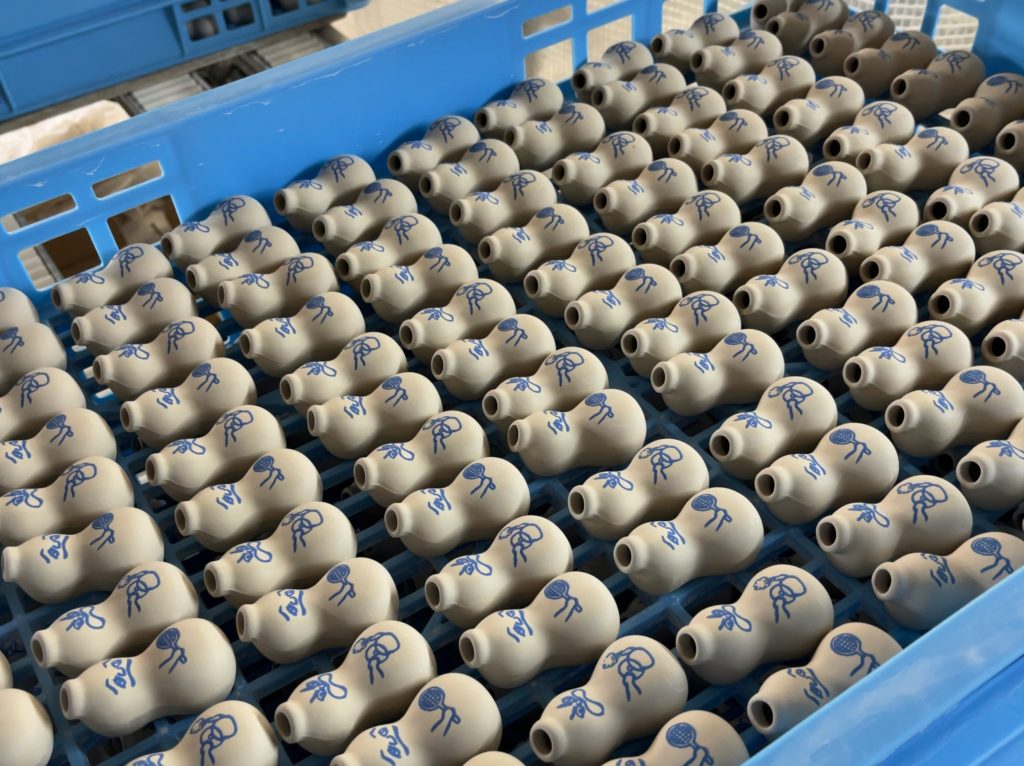 このあとはシリコンスタンプで顔を入れ、釉薬に浸けたあと、焼き上げます。