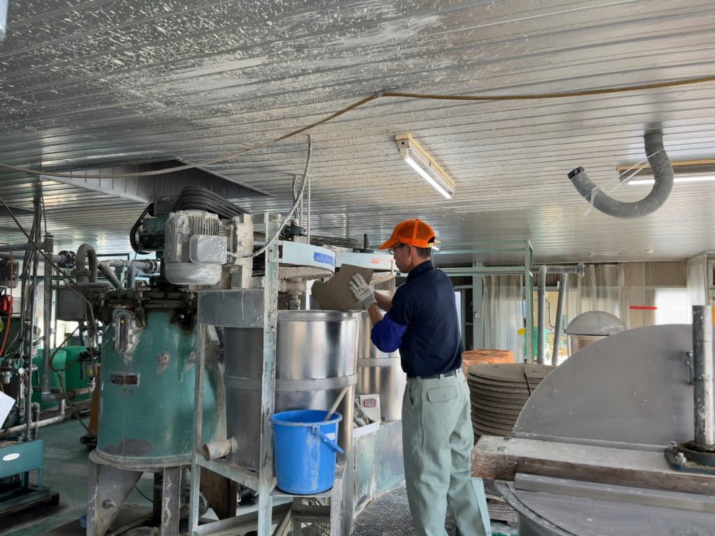 この吸水時間は季節によって変わるため、長年のノウハウが必要となってきます。といっても、まだまだ粘土は緩い状態。