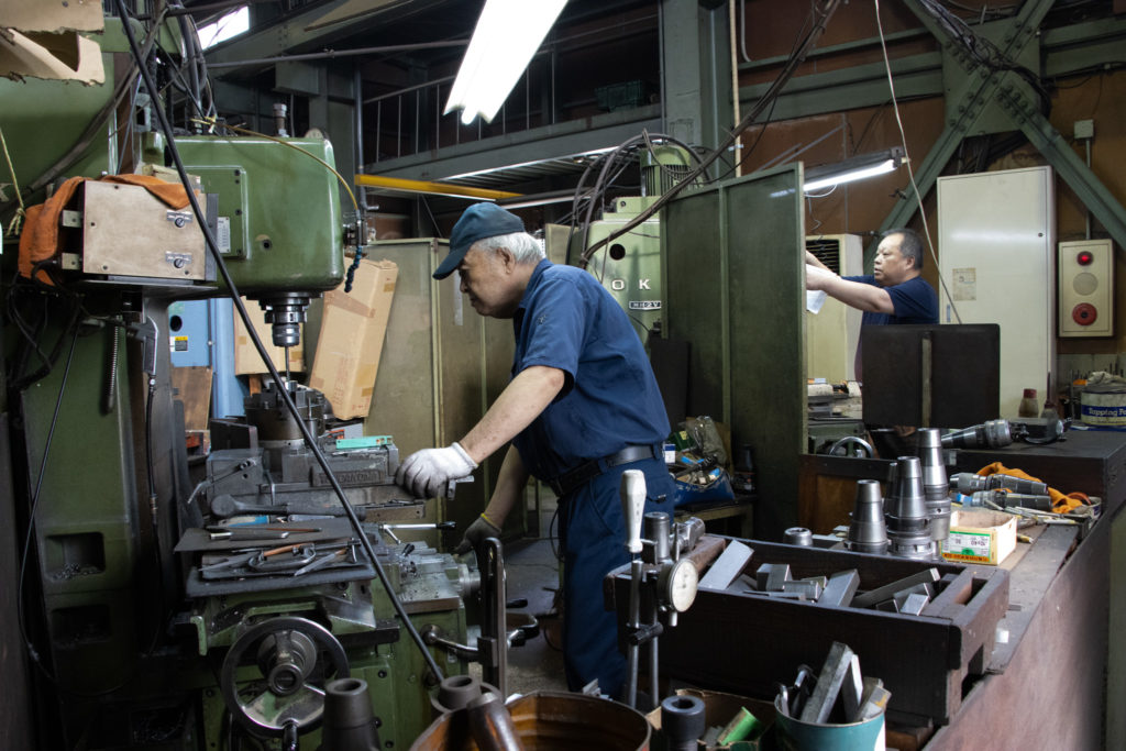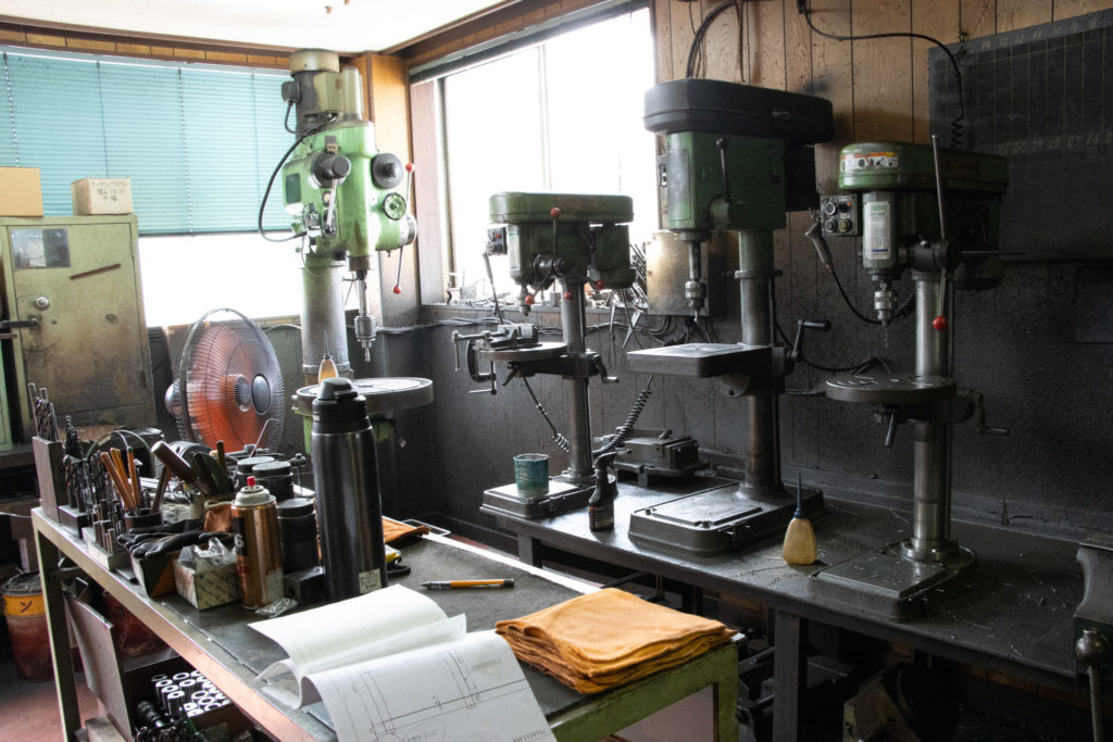 神穂工業所さんにはクラシックな機械が設備されており、現代の自動的で高性能な機械ではありませんが、その分、壊れにくく、応用が効くそうです。